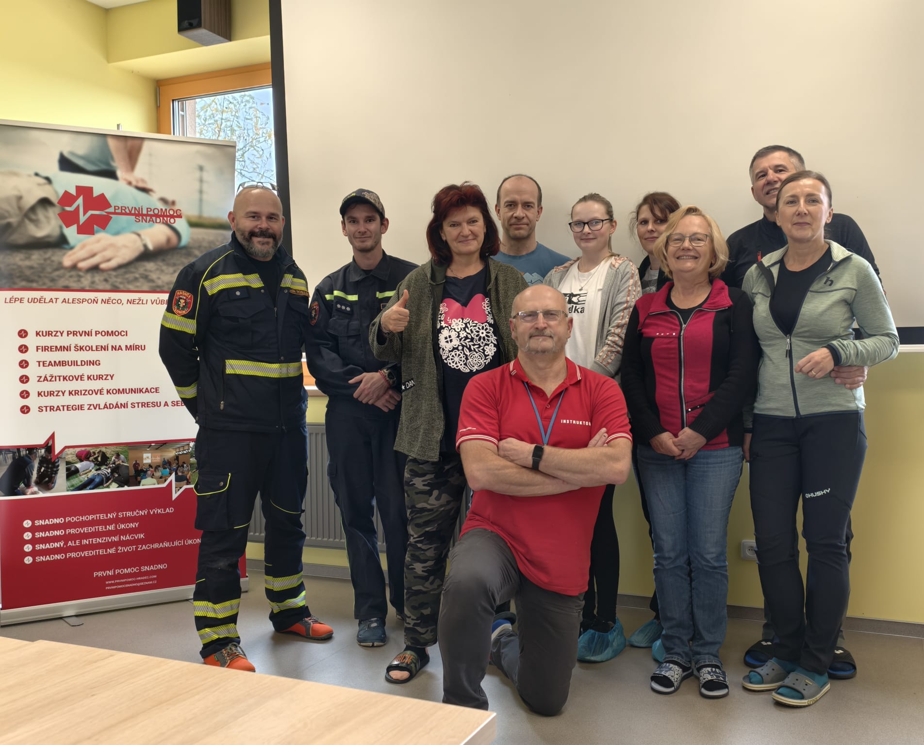Děkujeme všem účastníkům za skvělou atmosféru, chuť učit se a hlavně odvahu – protože vědět, jak správně zareagovat, když jde o vteřiny, může rozhodnout o životě.